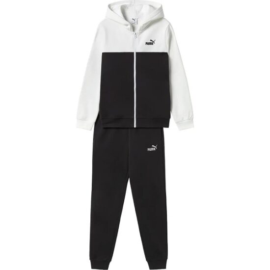 TUTA PUMA HOODED FZ SWEAT SUIT PUMA BLACK WHITE BAMBINO